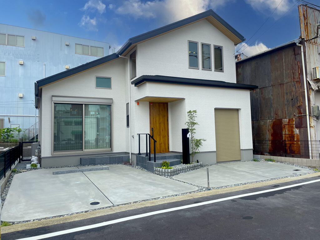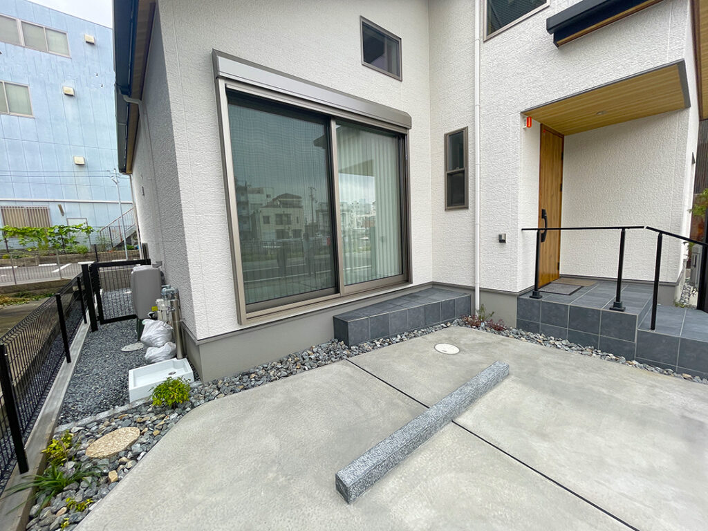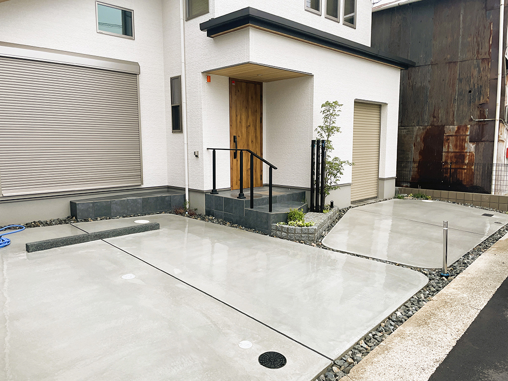 神戸市・ご家族の集う広いガレージがあるシンプル外構